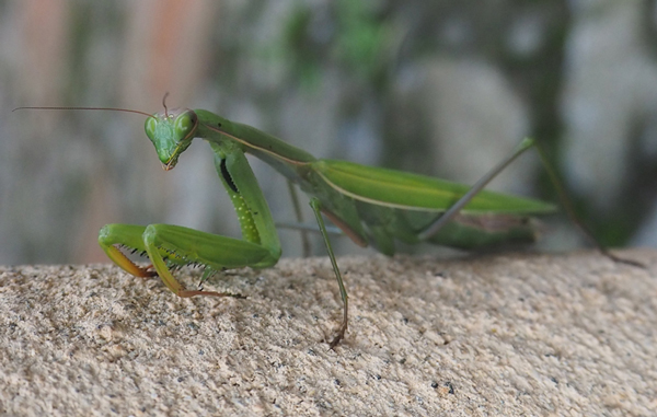 This mantis visited us in our holiday residence in Varigotti/Ligurien/Italy. Meeting a mantis is a strange experience. The seem to watch you in a selfconfident way without any fear. And you wonder: "What is it's impression of me"